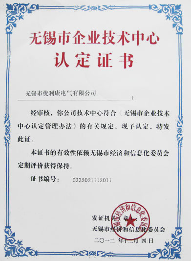 Certificate of Wuxi Enterprise Technology Center