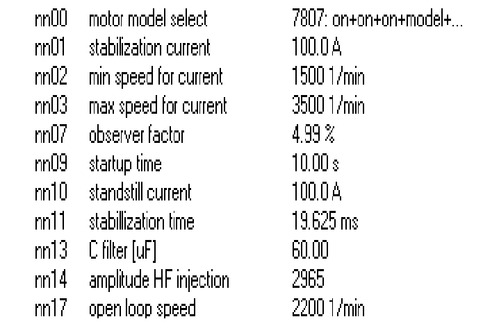在不帶濾波器且電機軸上沒有負載的情況下,按照電機參數(shù)進行 自學習。Dr30:2倍相電阻,Dr31,Dr64:2倍相電感。
