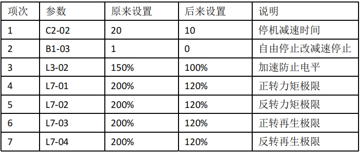 d. 變頻器參數(shù)變更如下: